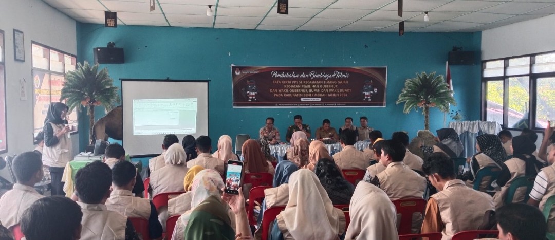 Redelong – Pada hari Selasa tanggal 04 Juni 2024 sekira pukul 08.30 Wib telah berlangsung kegiatan pembekalan dan bimbingan teknis tata kerja panitia pemungutan suara (PPS) Se-Kecamatan Timang Gajah pada Pilkada Tahun 2024, yang bertempat di aula kantor Camat Timang Gajah Kabupaten Bener Meriah.