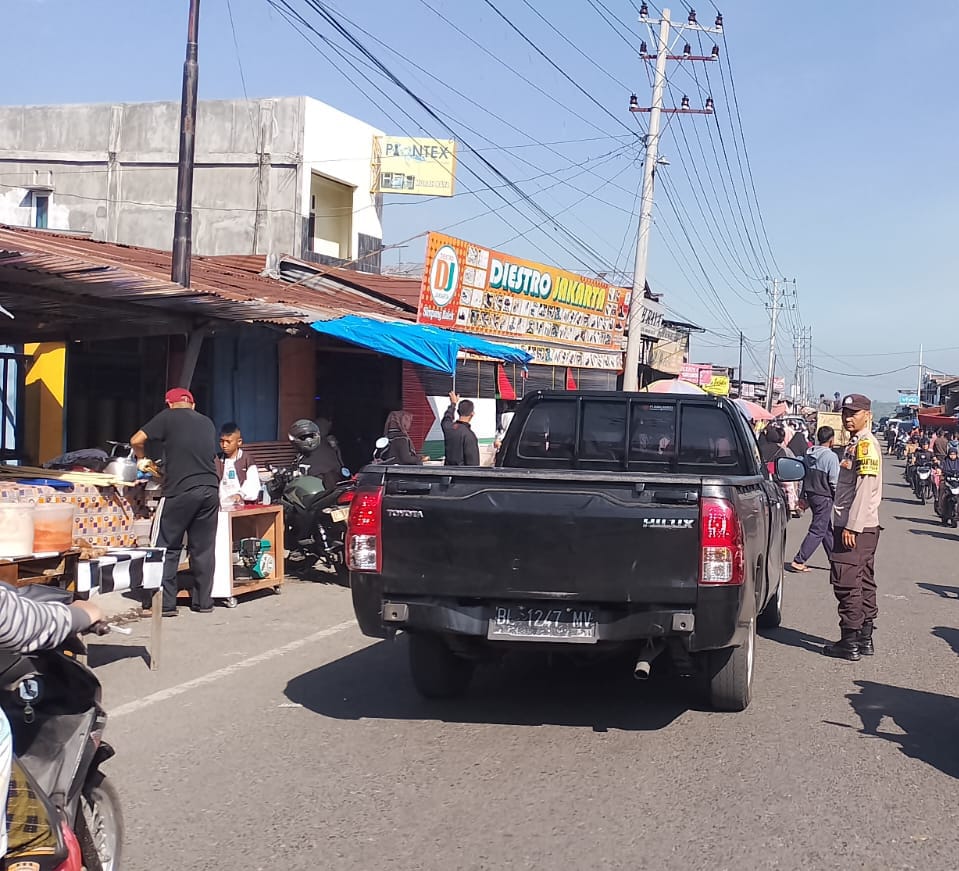 Personel Polsek Wih Pesam Berjaga di Pasar Tradisional Simpang Balik Demi Kenyamanan Warga