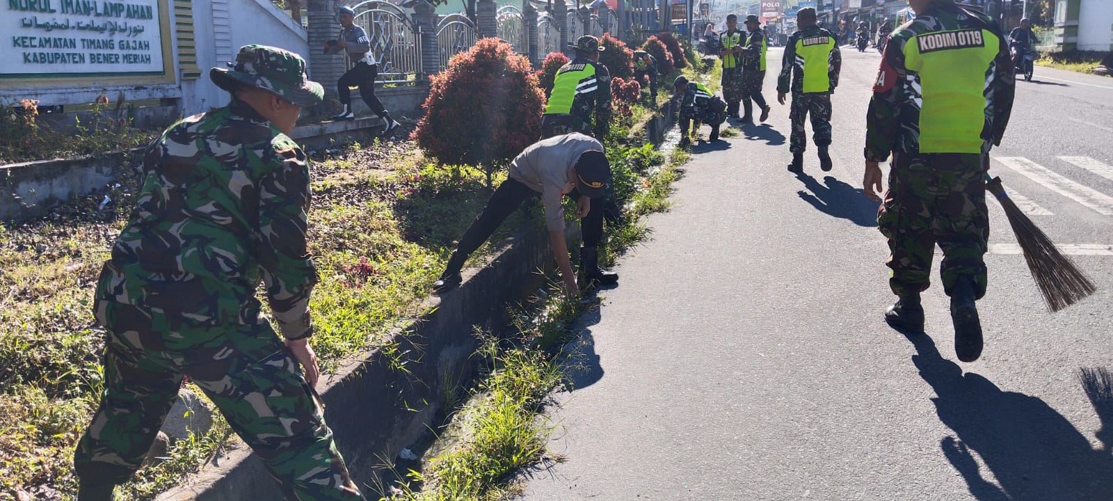Bener Meriah – Personel Polsek Timang Gajah yang dipimpin langsung oleh Kapolsek Timang Gajah, AKP Bandahro Halomoan Nasution, bersama TNI dan warga Kampung Lampahan Kecamatan Timang Gajah, melaksanakan gotong royong membersihkan lingkungan Masjid Nurul Iman Kampung Lampahan pada Jumat, 14 Juni 2024.