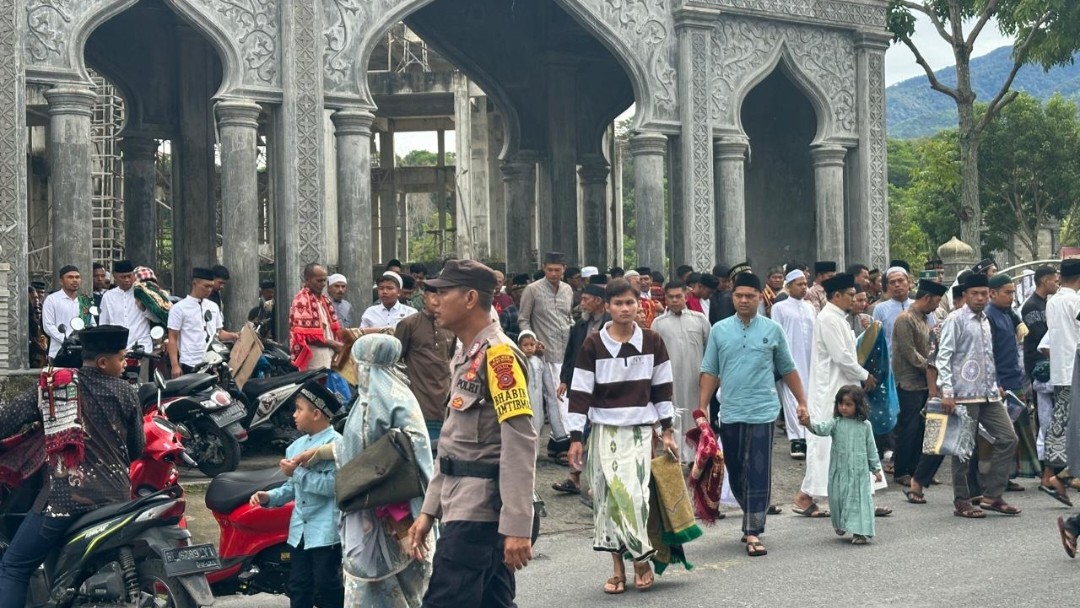 Redelong – Dalam rangka memberikan rasa aman dan nyaman bagi masyarakat yang melaksanakan sholat Idul Adha 1445 H, personel Polres Bener Meriah dan Polsek jajaran melaksanakan kegiatan pengamanan di seputaran Wilayah Hukum Polres Bener Meriah. Langkah ini diambil untuk mengantisipasi terjadinya tindak kriminalitas serta melancarkan arus lalu lintas selama pelaksanaan sholat Idul Adha, Senin, 17 Juni 2024.