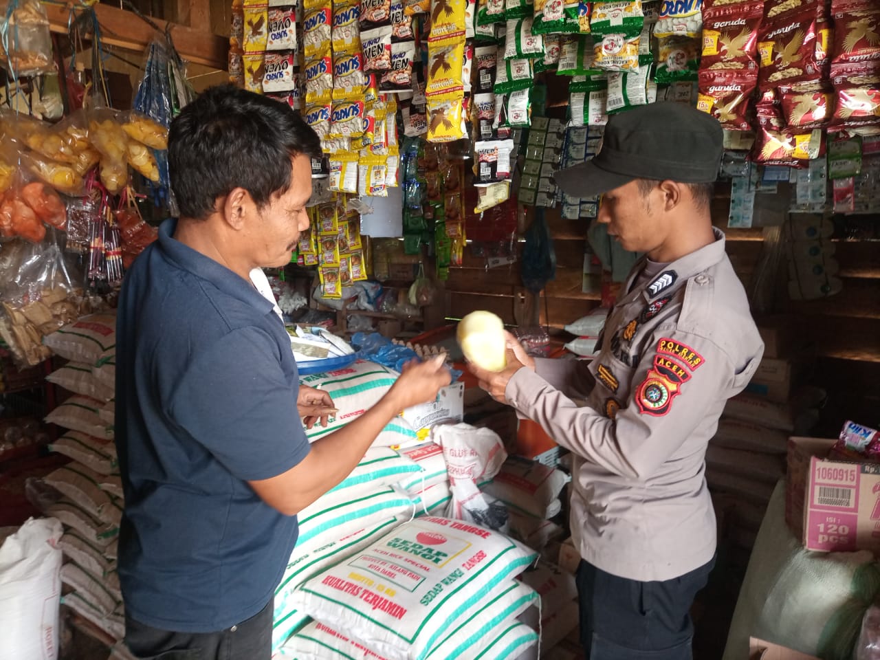 Patroli dan Pantau Harga Sembako di Toko Kelontong, Oleh Personel Polsek Mesidah