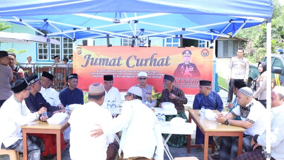 Redelong – Kapolres Bener Meriah gelar Jumat curhat bersama Masyarakat di Masjid Al-Mukhlisin Kampung Wonosobo, Kecamatan Wih Pesam, Kabupaten Bener Meriah, Jumat 21 Juni 2024.