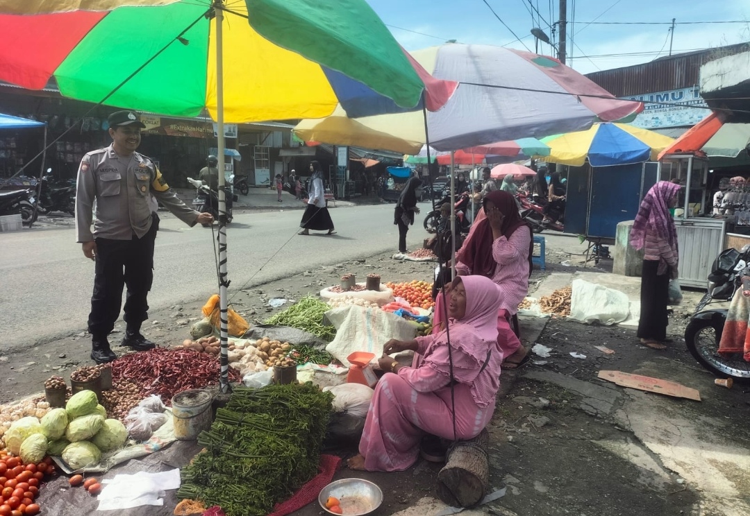 Redelong – Pada Sabtu, 29 Juni 2024, personel Polsubsektor Gajah Putih melakukan patroli dan pengaturan arus lalu lintas di pasar tradisional Reronga, yang terletak di Kecamatan Gajah Putih, Kabupaten Bener Meriah.
