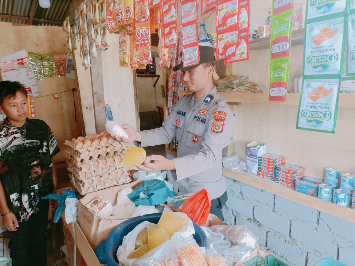 Bhabinkamtibmas Polsek Mesidah Melaksanakan Pengecekan Ketersediaan Sembako Di Wilayah Hukum Polres Bener Meriah