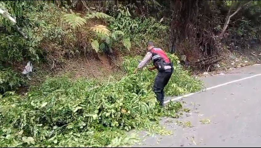Respon Cepat Personel Polsek Pintu Rime Gayo Bantu Bersihkan Pohon yang Tumbang ke Jalan