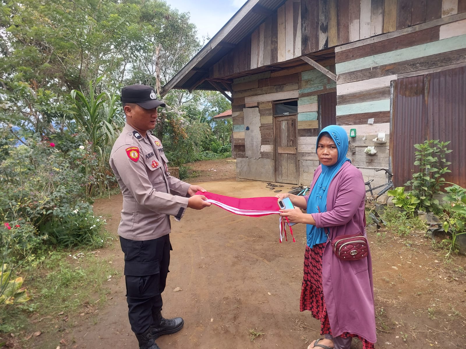 Personel Polsek Mesidah Bagikan Bendera Merah Putih Kepada Masyarakat Dalam Rangka Menyambut HUT RI Ke-79 Tahun