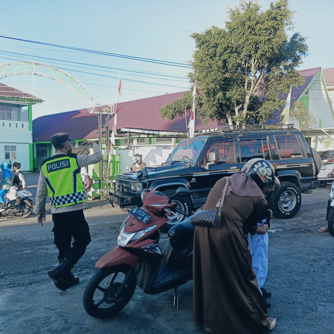 Personel Polsek Bukit Lakukan Pengaturan Arus Lalu Lintas untuk Meningkatkan Keselamatan di Pagi Hari