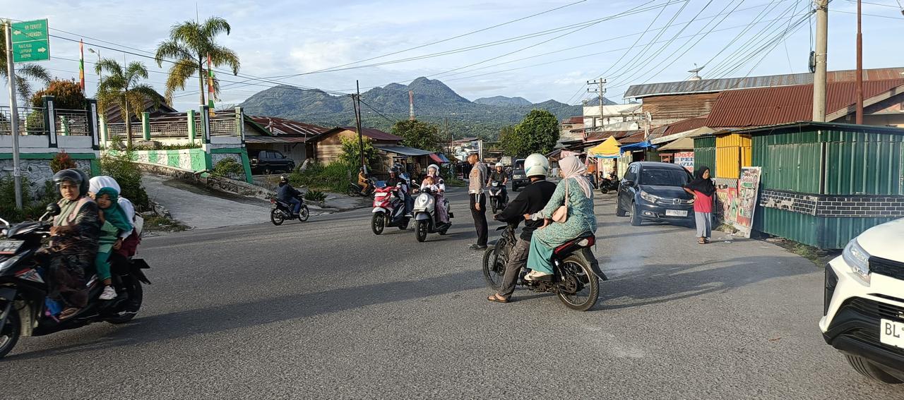 Redelong – Satuan Lalu Lintas (Sat Lantas) Polres Bener Meriah melaksanakan kegiatan Strong Point atau Pengaturan Lalu Lintas pada Senin, 19 Agustus 2024. Kegiatan ini dilakukan pada pagi hari saat anak-anak berangkat ke sekolah dan masyarakat memulai aktivitas kerja, dengan fokus di beberapa titik rawan kemacetan, pelanggaran, dan kecelakaan lalu lintas di wilayah hukum Polres Bener Meriah.