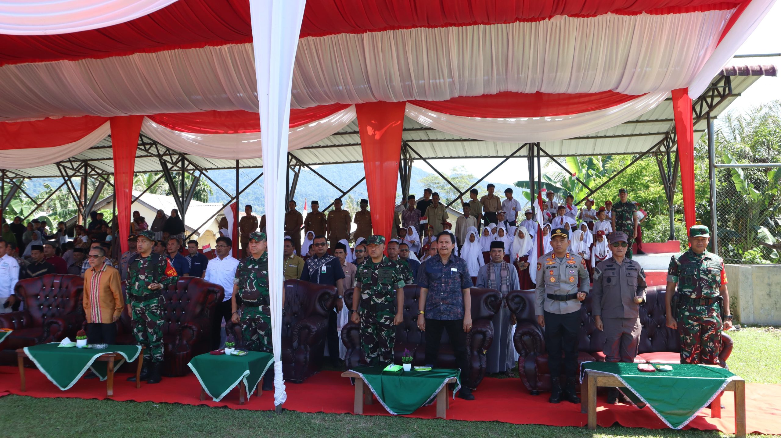 Redelong – Kapolres Bener Meriah AKBP Tuschad Cipta Herdani, S.I.K., M.Med.Kom., menghadiri penutupan TMMD (Tentara Manunggal Membangun Desa) Ke-121 T.A 2024 Pada hari Kamis tanggal 22 Agustus 2024, Bertempat di Lapangan Sepakbola Kampung Blang Panu, Kecamatan Syiah Utama, Kabupaten Bener Meriah.