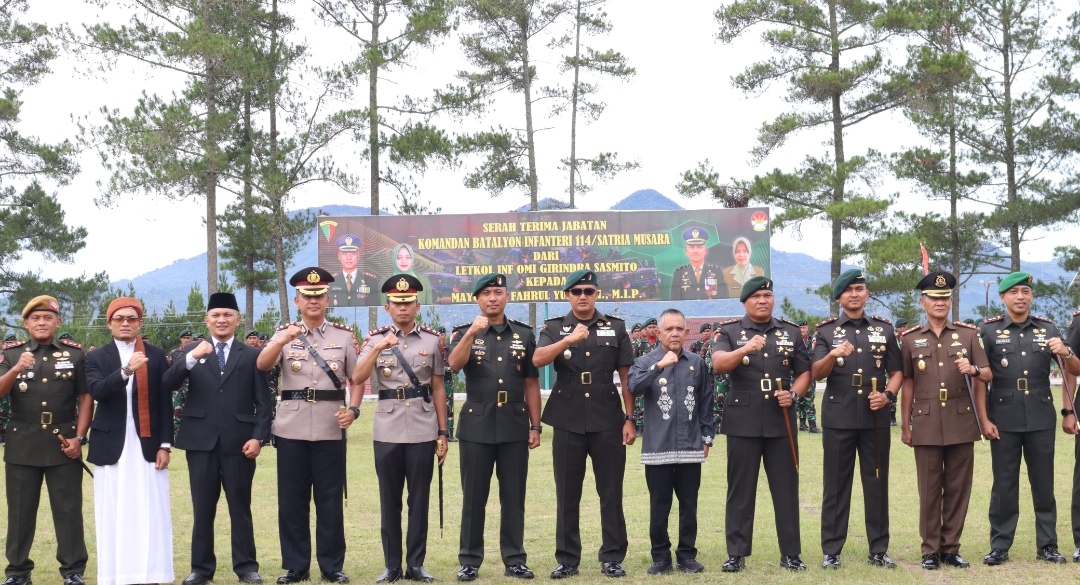 Komandan Brigade Infanteri 25/Siwah Letnan Kolonel Inf. Raja gunung nasution, S.I.P., M.H.I memimpin Sertijab Danyonif 114/Satria Musara dari Letkol Inf. Omi Girindra Sasmito kepada Mayor Inf Fahrul Yuza, S.H.