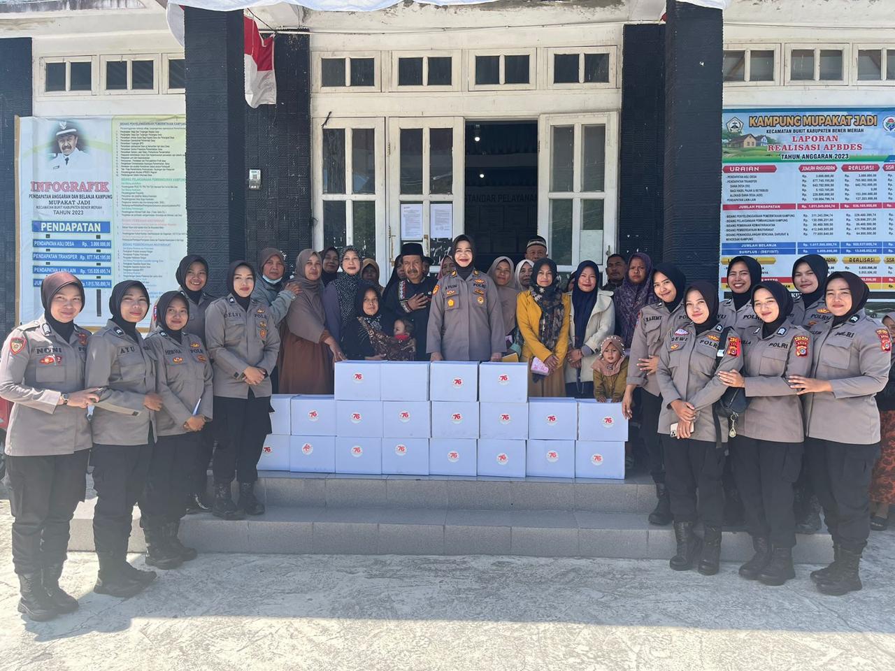 Reje Kampung Mupakat Jadi dalam sambutannya menyampaikan rasa terima kasih kepada para Polwan Polres Bener Meriah atas pencerahan dan bantuan sosial berupa sembako yang diberikan kepada masyarakat setempat.