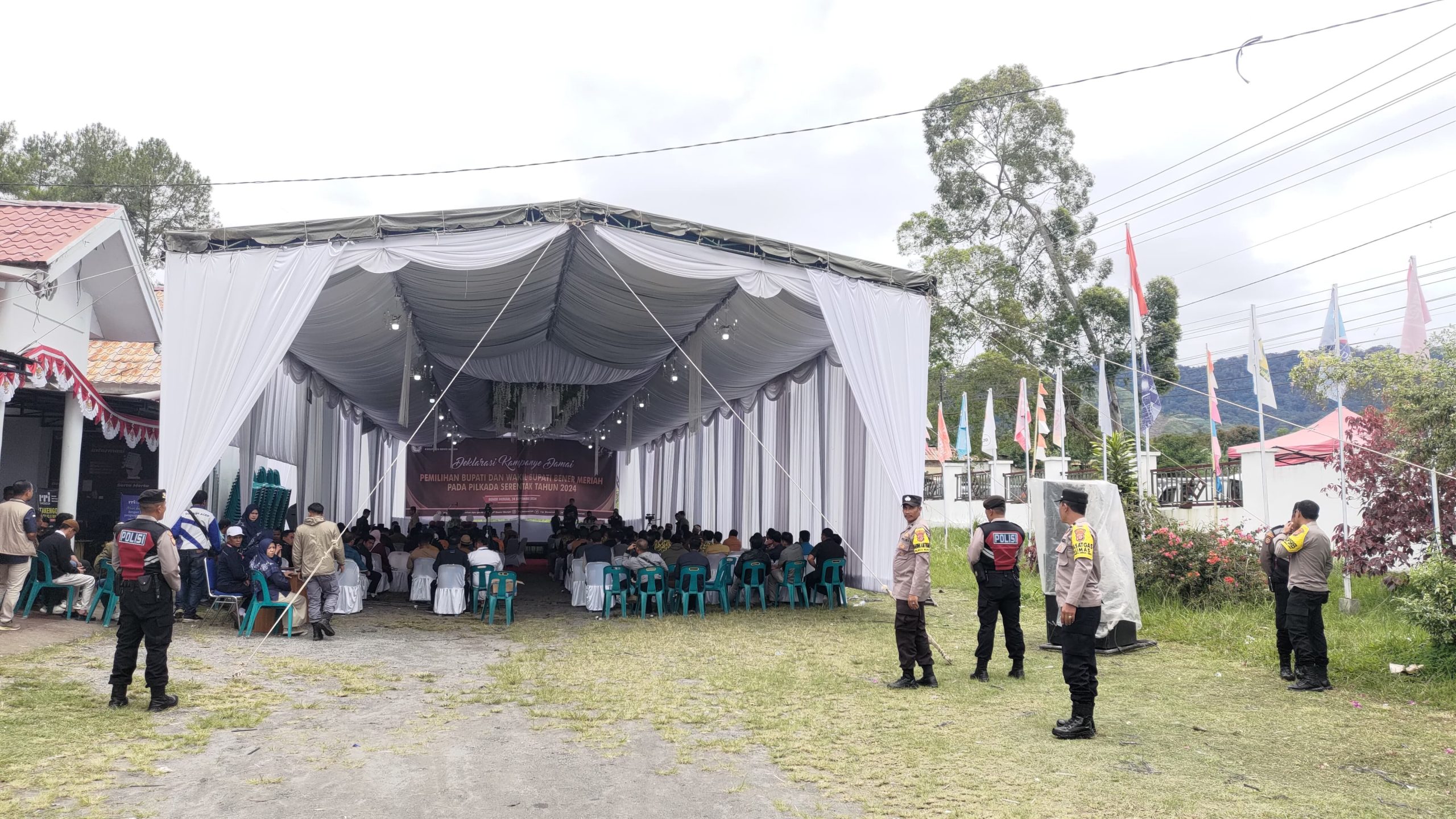 Redelong – Personel Polres Bener Meriah melaksanakan Pengamanan Deklarasi Kampanye Damai Pemilihan Bupati Dan Wakil Bupati Bener Meriah pada Pilkada serentak Tahun 2024 bertempat di Kantor KIP Bener Meriah,Selasa, 24 September 2024.