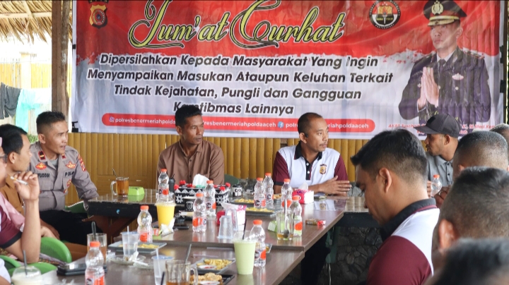 Kapolres Bener Meriah AKBP Tuschad Cipta Herdani mengatakan, Jumat Curhat ini merupakan salah satu program gagasan Kapolri yang dilaksanakan oleh seluruh jajaran kepolisian khususnya Polres Bener Meriah. Hal ini bertujuan agar masyarakat dapat menyampaikan secara langsung tentang pendapat, keluhan dan saran kepada Polri.