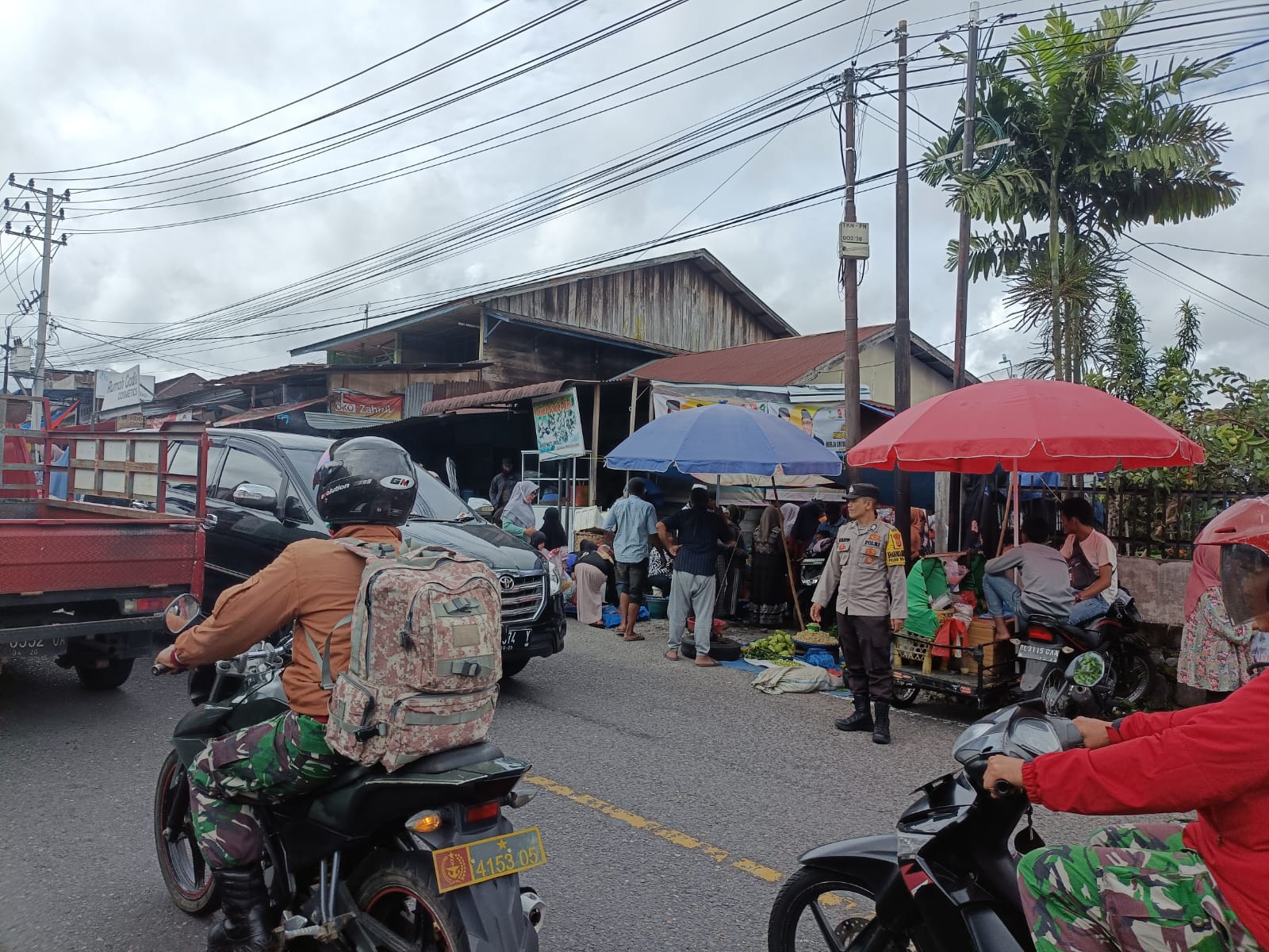 Personel Polres Bener Meriah Melaksanakan Patroli dan Pengaturan di Pasar Simpang Balik Guna Tingkatkan Keamanan Dan Kenyamanan.