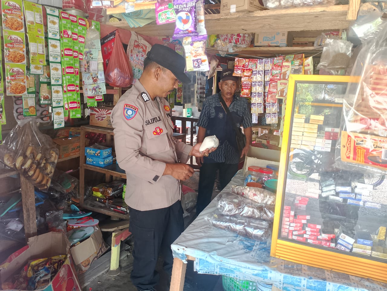 Personel melakukan pengecekan langsung ke kios-kios warga terkait ketersediaan komoditas sembako seperti beras, gula, minyak goreng, tepung terigu, telur, dan kebutuhan pokok lainnya.