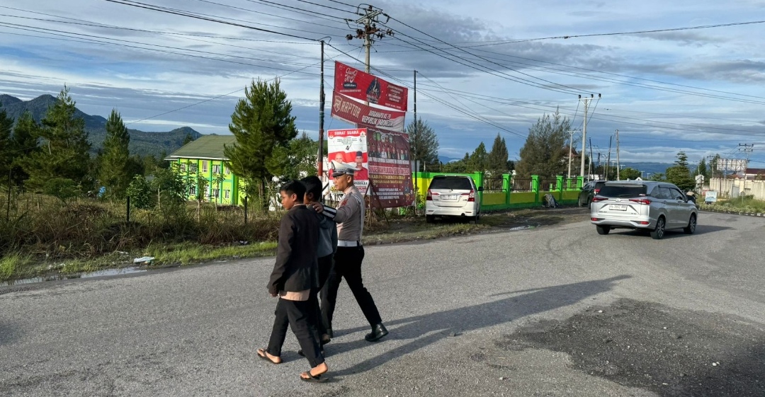 Personel Polres Bener Meriah Lakukan Strong Point Pagi Rutin, Lalu Lintas Jadi Lebih Aman dan Tertib.