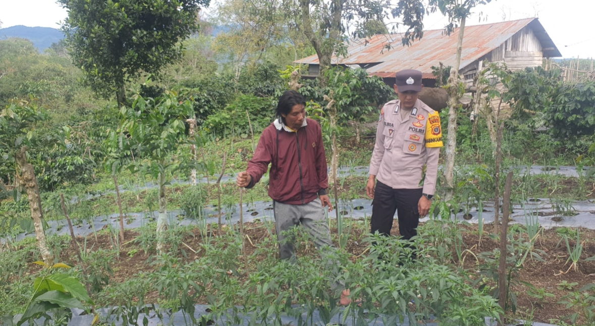 Redelong – Bhabinkamtibmas Polsek Mesidah Polres Bener Meriah melaksanakan sambang warga sekaligus mengecek lahan produktif warga untuk ketahanan pangan warga di Kampung Gunung Sayang, Kecamatan Mesidah, Kabupaten Bener Meriah, Jumat, 22 November 2024.