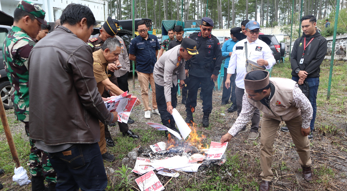 KIP Bener Meriah didampingi Tim Pamatwil Polda Aceh dan Forkopimda Bener Meriah Lakukan Pemusnahan Kelebihan Surat Pemilihan Umum 2024