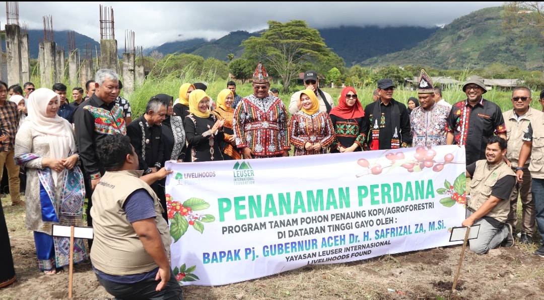 Redelong – Penjabat (PJ) Gubernur Aceh, Dr. H. Safrizal ZA, M.Si., memimpin penanaman perdana dalam Program Tanam Pohon Penaung Kopi atau Agroforestri yang berlangsung di Dataran Tinggi Gayo Kabupaten Bener Meriah, Sabtu, 30, November 2024.