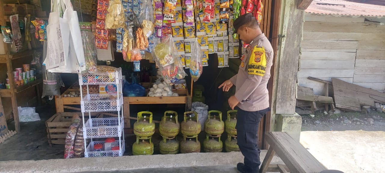Personel melakukan pengecekan langsung ke kios-kios warga terkait ketersediaan komoditas sembako seperti beras, gula, minyak goreng, tepung terigu, telur, dan kebutuhan pokok lainnya.