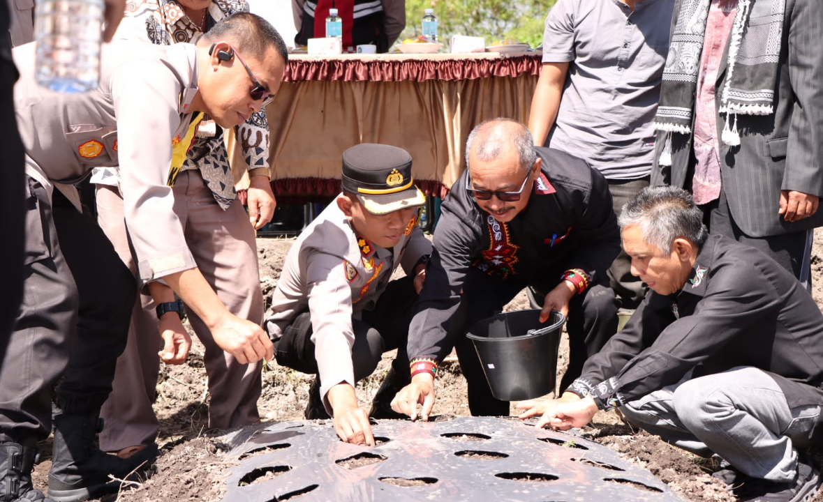 Usai sambutan, Kapolres dan Pj Bupati bersama-sama melakukan penanaman serentak tiga jenis tanaman, yakni bawang merah, daun bawang, dan kentang, sebagai simbol dimulainya program ini.