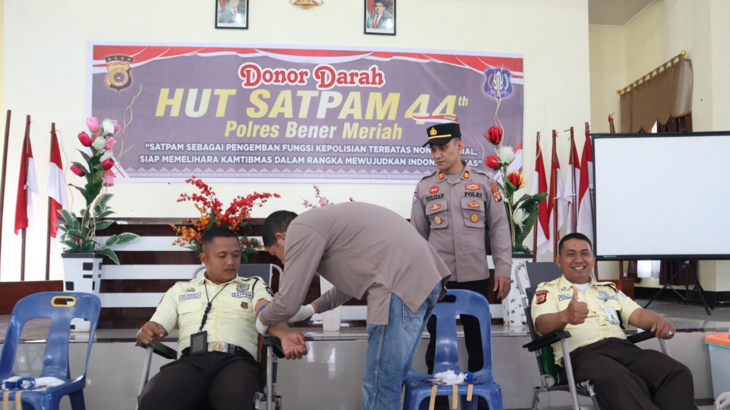 Kegiatan ini diikuti oleh personel Polres Bener Meriah, anggota Satuan Pengamanan (Satpam). Donor darah tersebut bertujuan untuk membantu memenuhi kebutuhan darah di wilayah Bener Meriah sekaligus meningkatkan solidaritas dan kepedulian sosial serta mempererat sinergitas Kepolisian dan Satpam.