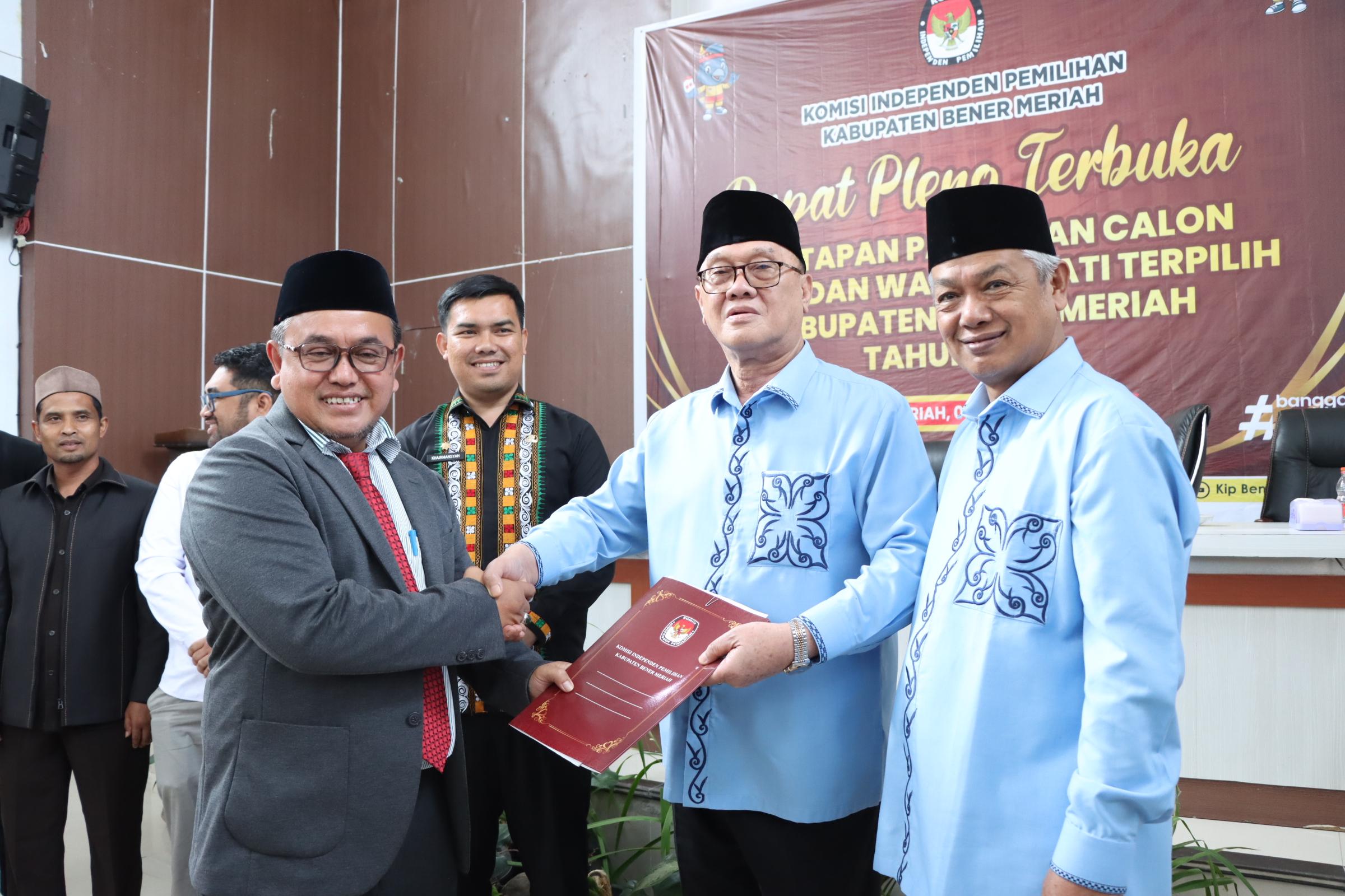 Kemudian, penyerahan berita acara dan salinan keputusan KIP Bener Meriah kepada pasangan Calon terpilih nomor urut 2 pasangan Tagore Abu Bakar – Armia, ketua DPRK, dan Panwaslih Bener Meriah.