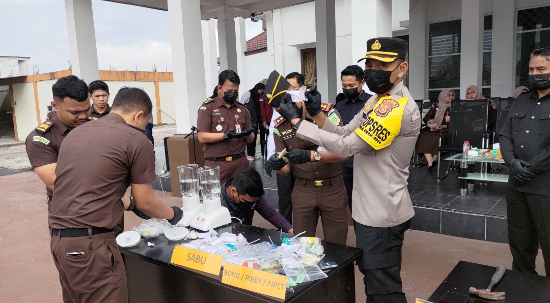 Barang bukti yang dimusnahkan meliputi narkotika, alat-alat yang digunakan dalam kejahatan, serta barang-barang lain yang telah ditetapkan oleh pengadilan untuk dimusnahkan. Proses pemusnahan dilakukan secara terbuka dengan disaksikan langsung oleh para pejabat dan masyarakat sekitar.