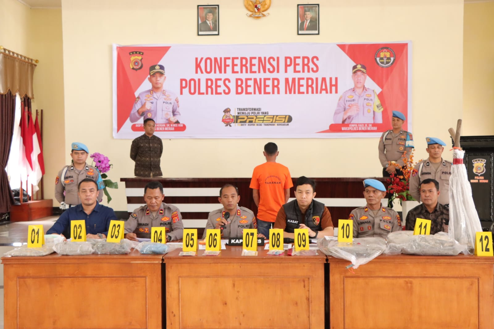 “Alhamdulillah, kurang dari 24 jam pelaku sudah ditangkap. Bersamanya juga diamankan barang bukti berupa satu unit sepeda motor, satu kapak, satu bilah parang, satu sangkur, uang tunai dua juta rupiah,satu kalung emas, satu dompet beserta KTP korban, satu unit handphone, satu lembar papan, dua cangkul, satu selang, satu karung semen bekas, sepasang sepatu both, dan satu set pakaian korban. Saat ini, pelaku beserta barang bukti diamankan di Satreskrim Polres Bener Meriah untuk proses hukum lebih lanjut,” kata Tuschad, dalam konferensi pers di Polres Bener Meriah, Jumat, 31 Januari 2025.