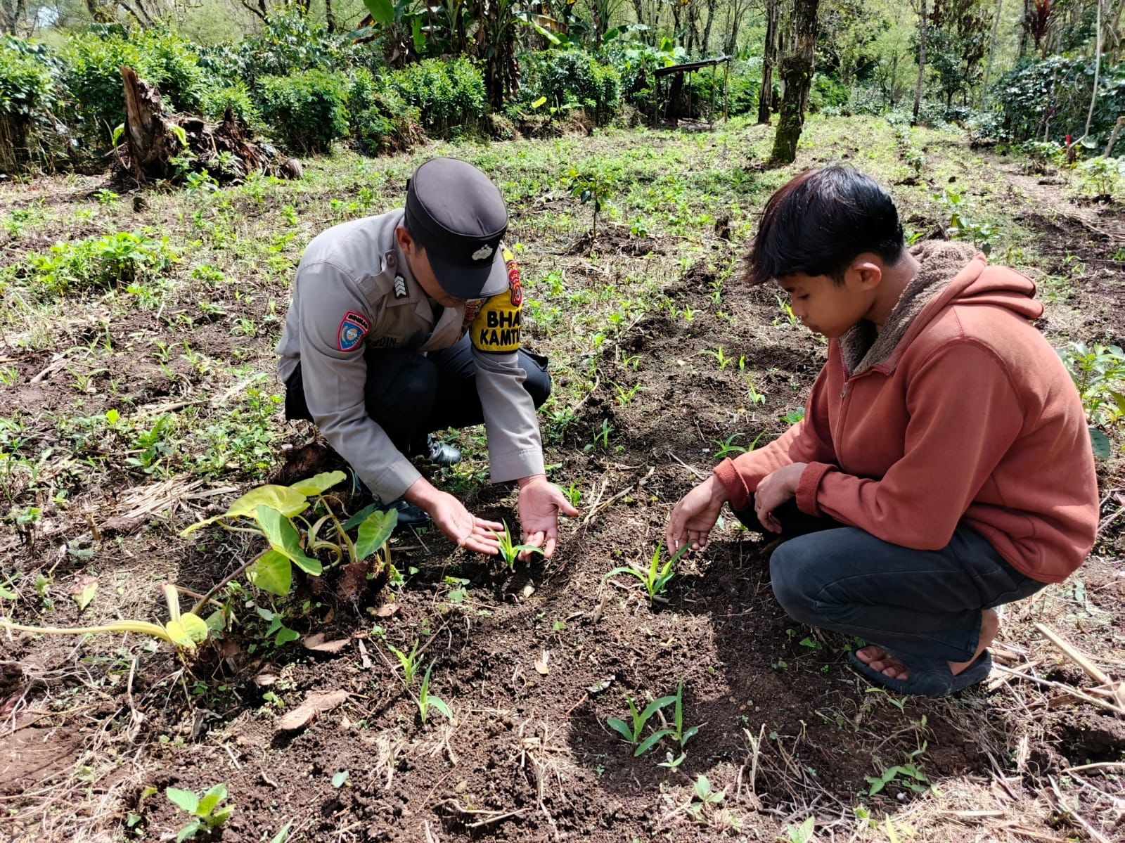 Redelong – Personel Polres Bener Meriah melakukan sambang ke kebun milik warga dan memberikan edukasi untuk semangat mewujudkan pekarangan pangan bergizi.