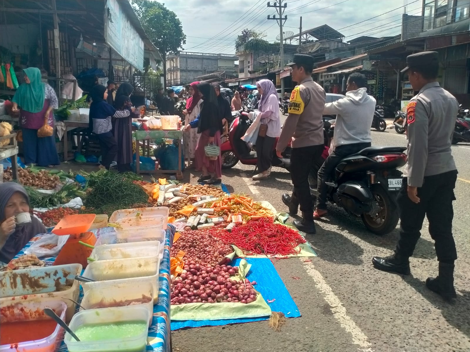 Selain melakukan patroli, personel Polsek Wih Pesam juga turut mengatur arus lalu lintas guna mencegah kemacetan dan memastikan kelancaran mobilitas warga yang berbelanja kebutuhan Ramadhan.