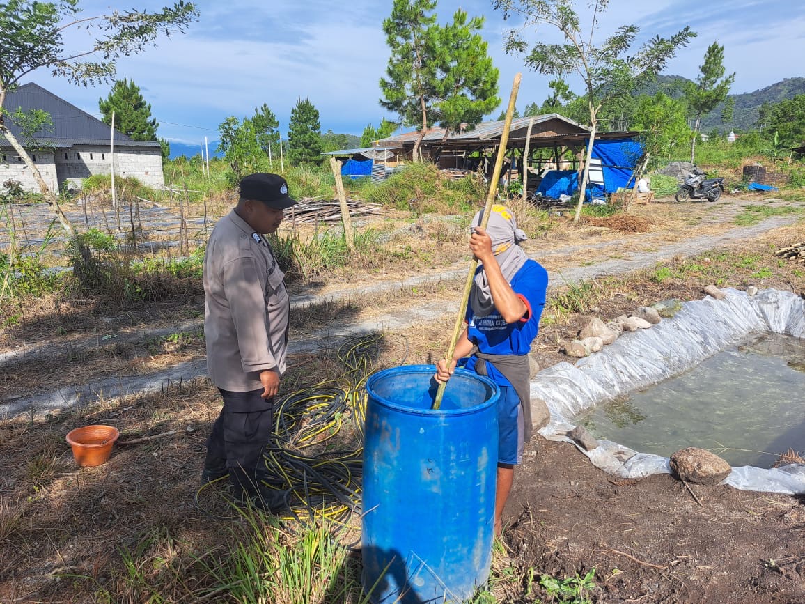 Dalam keadaan sedang berpuasa, Bhabinkamtibmas tetap semangat bertugas menjaga keamanan, ketertiban dan juga membantu warga mewujudkan lahan produktif.