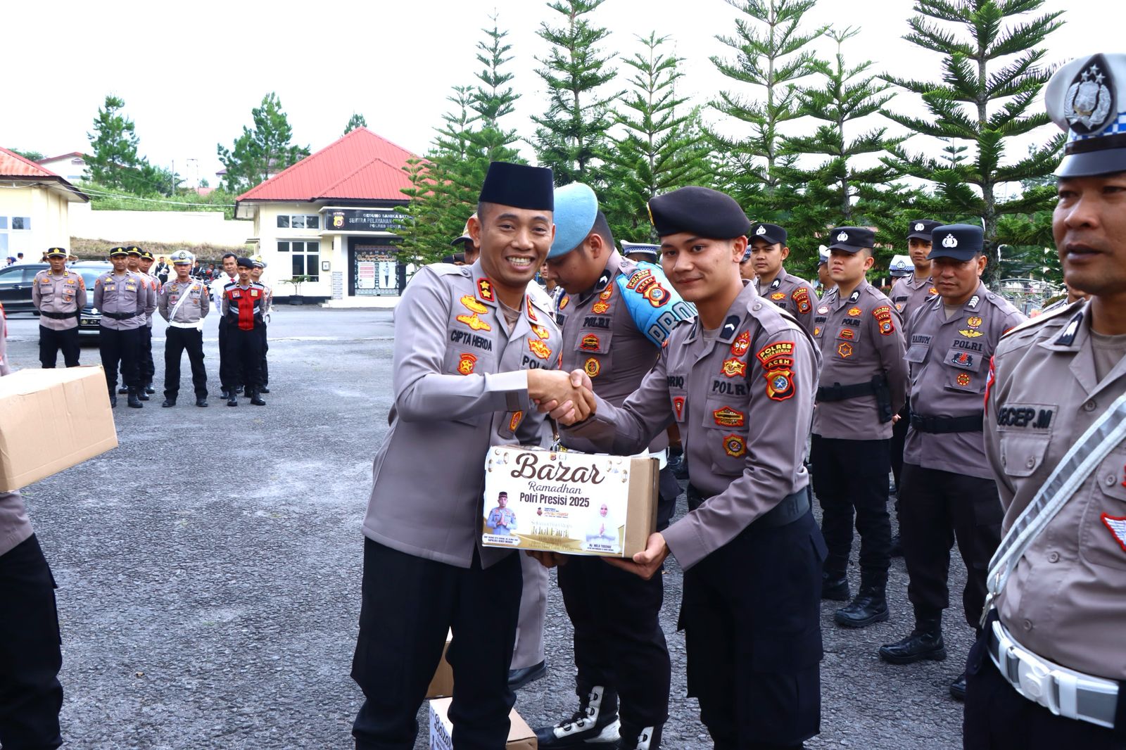 Redelong – Kapolres Bener Meriah AKBP Tuschad Cipta Herdani, S.I.K., M.Med.Kom didampingi Wakapolres beserta PJU dan Ketua Bhayangkari Membagikan Ratusan Paket Lebaran Secara Simbolis Kepada Personel Polres Bener Meriah, Brimob, PHL, Warakauri, dan Awak Media di Halaman Mako Polres Bener Meriah, Kamis 20 Maret 2025.