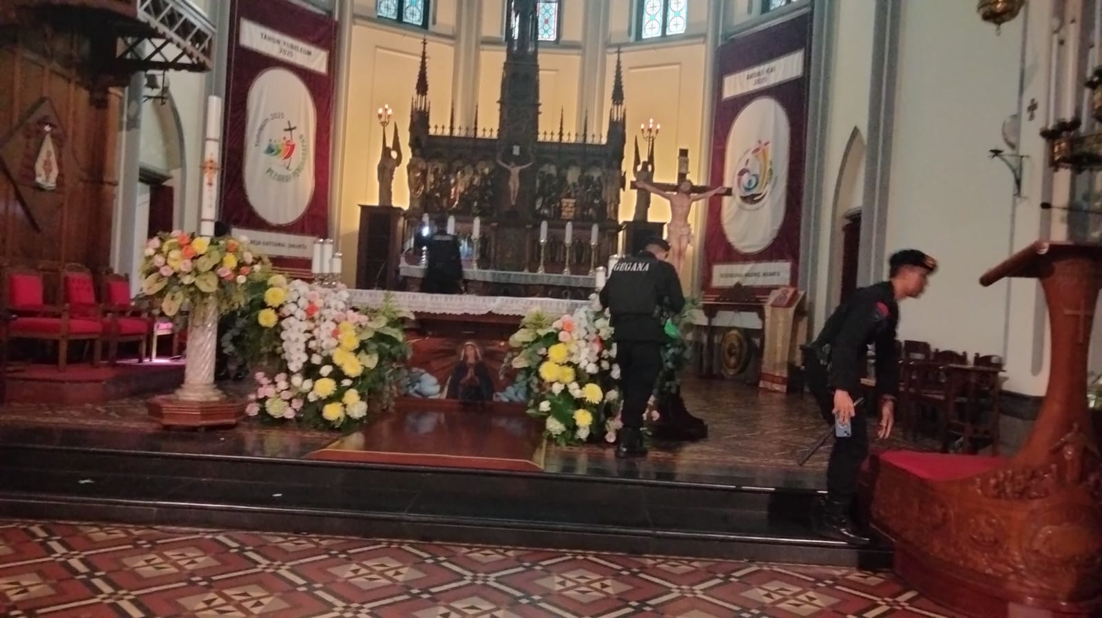 Sterilisasi dilakukan sejak pukul 06.00–07.00 WIB oleh Unit Jibom Gegana Polri, mencakup area dalam dan luar gereja, taman, altar, hingga toilet.