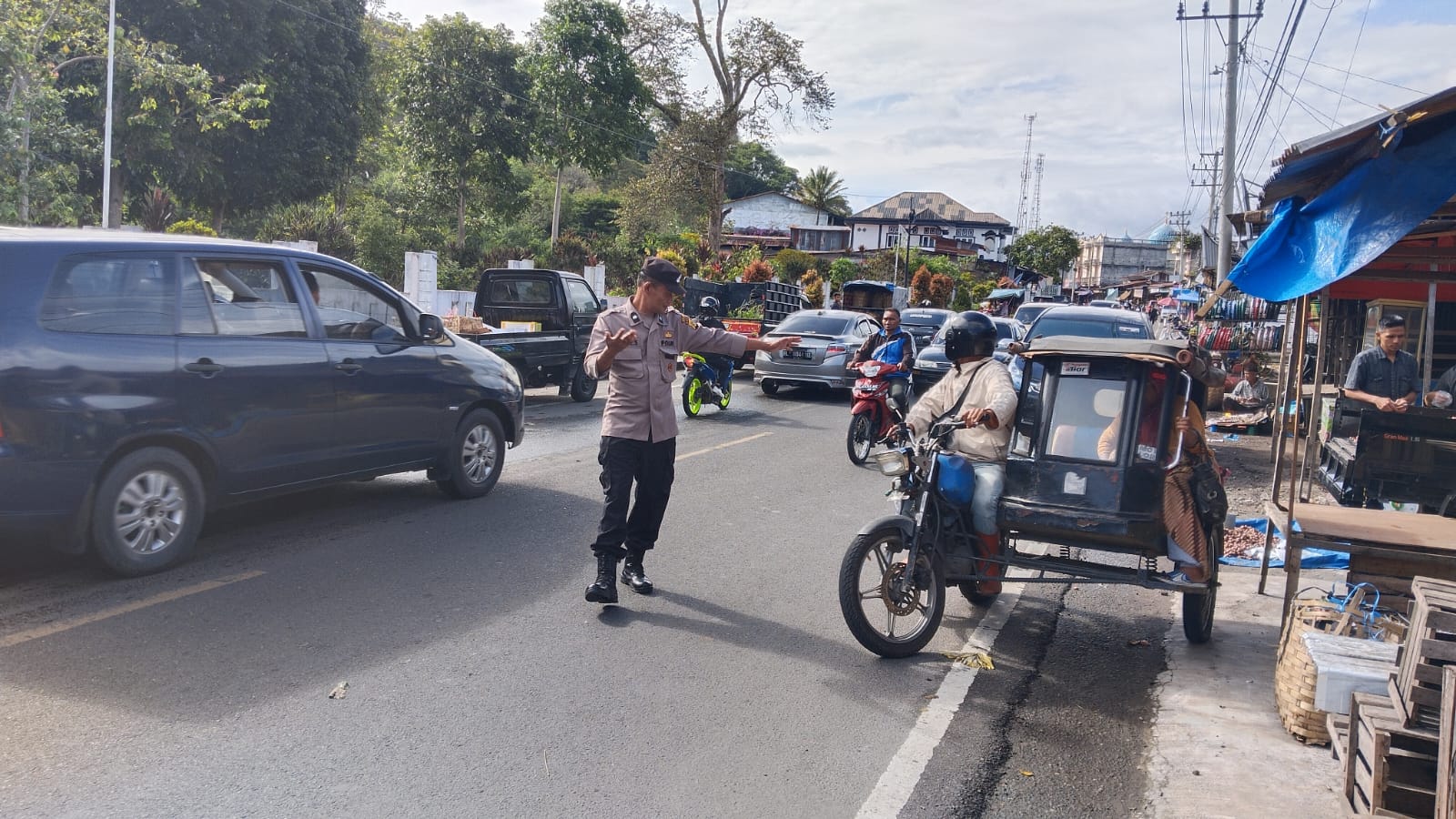 Polsek Wih Pesam gelar patroli dan atur arus lalu lintas di pasar tumpah simpang balik dan bener mulie
