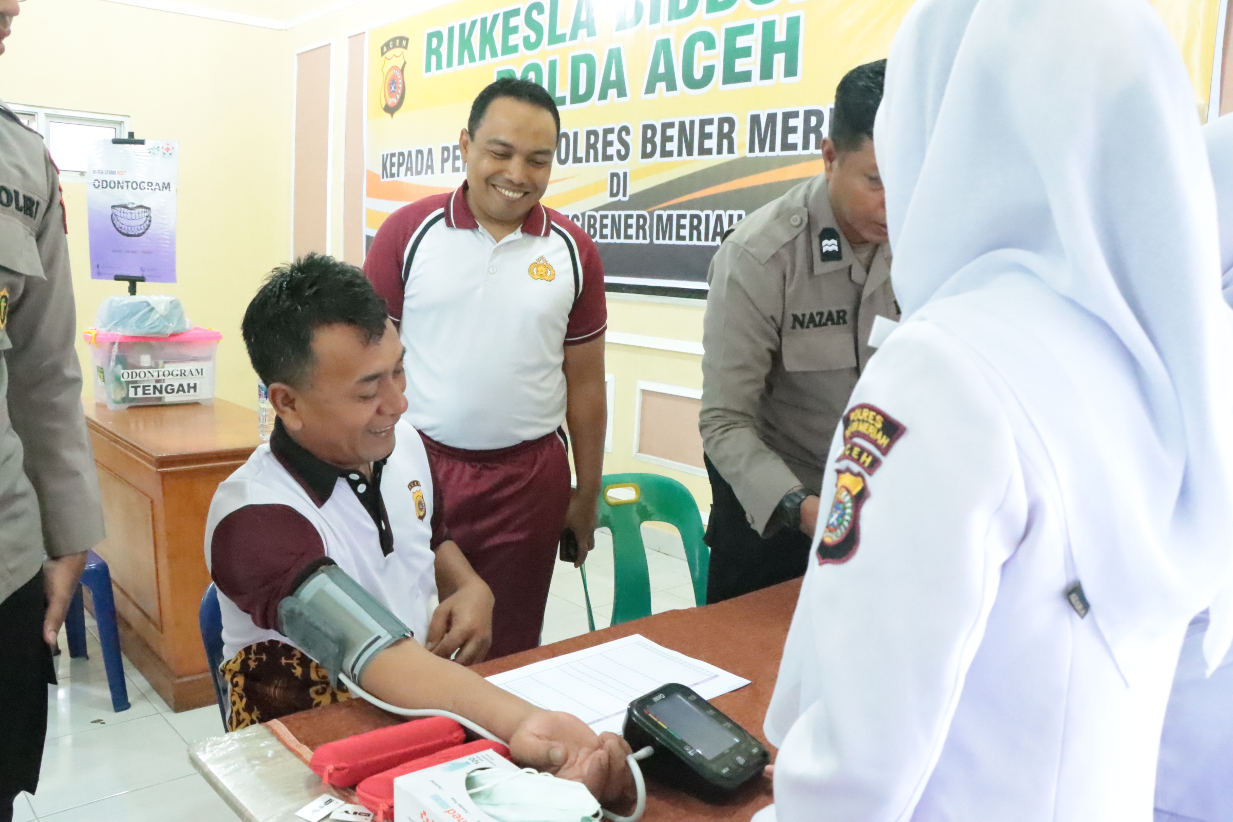 Pemeriksaan kesehatan tersebut diikuti oleh Kapolres Bener Meriah, AKBP Aris Cai Dwi Susanto, S.I.K., M.I.K., beserta para pejabat utama, seluruh personel Polres Bener Meriah, serta anggota Kompi 3 Batalyon B Pelopor.