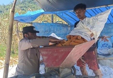“Personel Polsek turun langsung ke lapangan untuk membantu warga dalam menggiling atau merontokkan biji jagung hasil panen,” ungkap Ipda Suryadi.