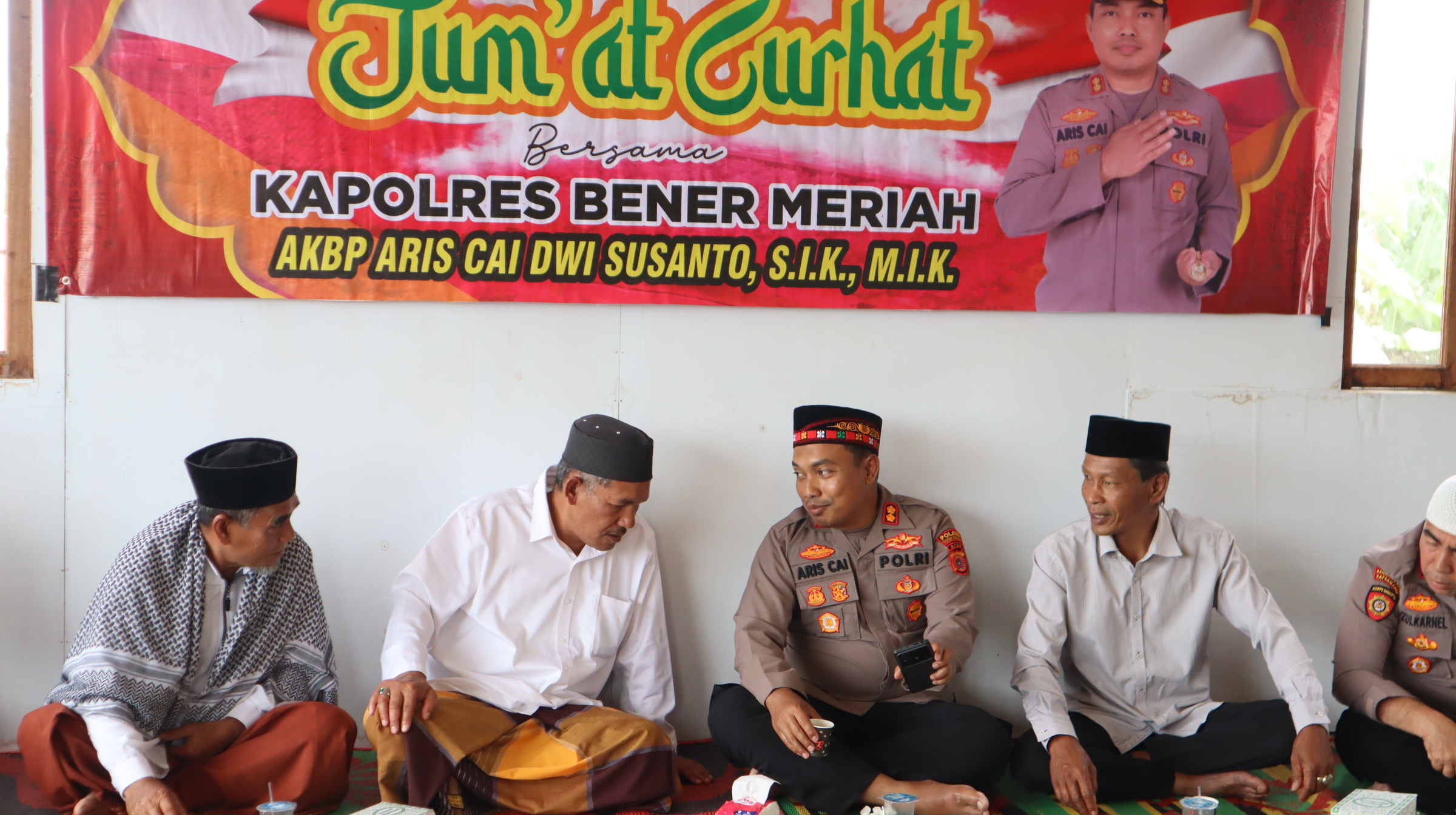Bener Meriah – Dalam rangka memperkuat sinergi antara kepolisian dan masyarakat, Polres Bener Meriah menggelar kegiatan Jumat Curhat bersama para tokoh masyarakat, agama, adat, dan pemuda di Kampung Pante Raya, Kecamatan Wih Pesam, pada Jumat (13/6/2025).