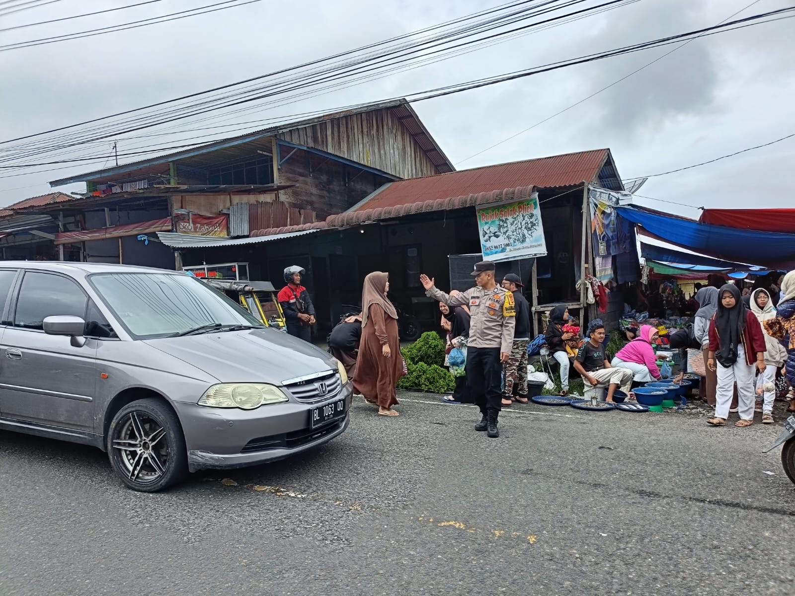 Polsek Wih Pesam tertibkan arus lalu lintas dan jaga keamanan pasar tumpah Bener Mulie