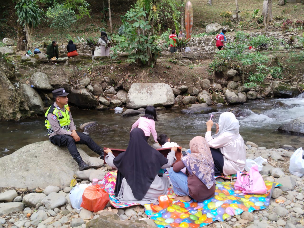 “Personel mengingatkan pemilik maupun pengelola objek wisata untuk selalu waspada terhadap kondisi cuaca, terutama potensi banjir mendadak akibat air bah saat hujan. Selain itu, pengunjung diimbau agar anak-anak yang berenang diawasi dengan ketat dan tidak mandi terlalu ke tengah sungai,” jelas Kapolsek.