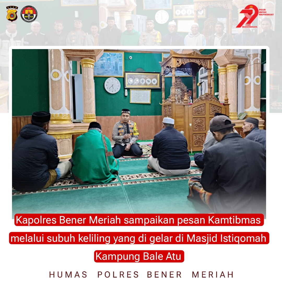 Polres Bener Meriah Gelar Subuh Keliling di Masjid Istiqomah Kampung Bale Atu, Kapolres Sampaikan Pesan