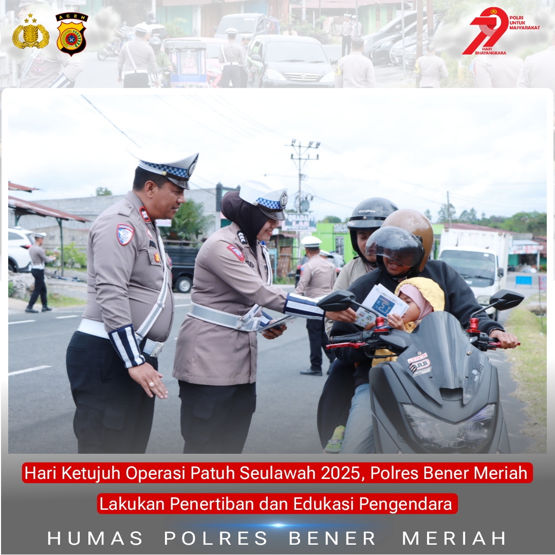 Hari Ketujuh Operasi Patuh Seulawah 2025, Polres Bener Meriah Lakukan Penertiban dan Edukasi Pengendara