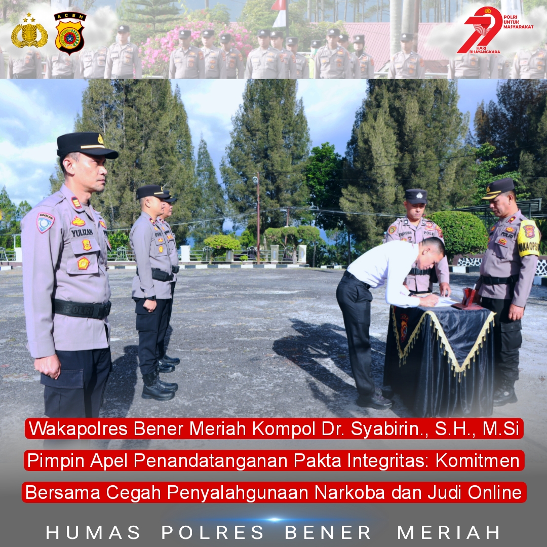 Wakapolres Bener Meriah Pimpin Penandatanganan Pakta Integritas: Komitmen Bersama Perangi Narkoba dan Judi Online