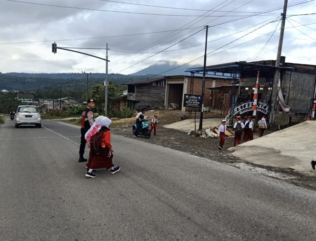 Polsek Permata Atur Lalu Lintas di Depan SDN Buntul Kemumu Demi Kelancaran Aktivitas Pagi