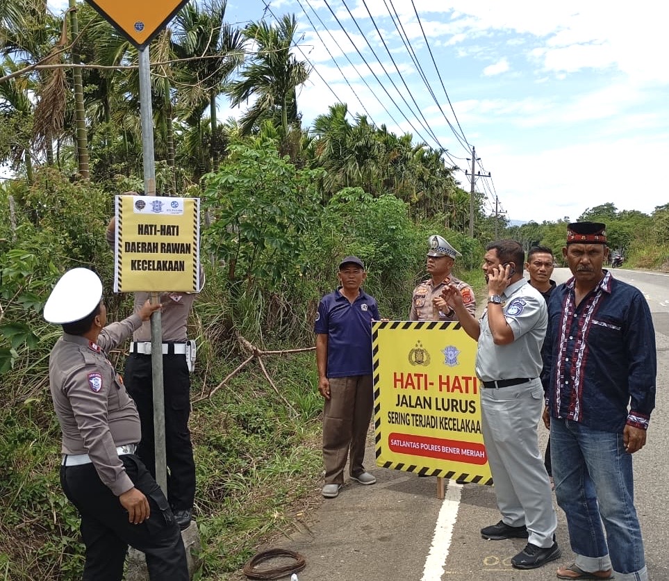 Satlantas Polres Bener Meriah Pasang Spanduk Himbauan Lalu Lintas di Jalur Utama, Tekan Angka Kecelakaan