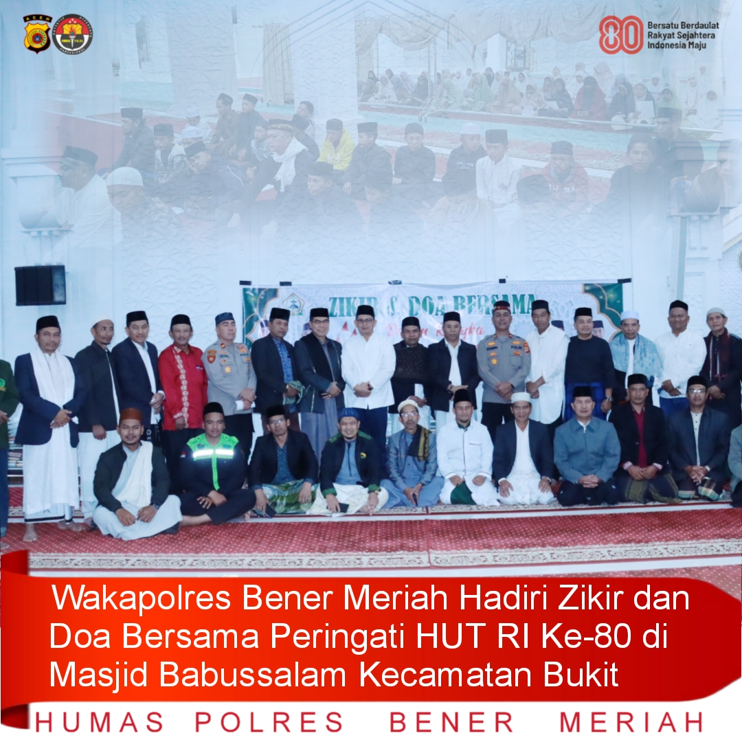 Wakapolres Bener Meriah Hadiri Zikir dan Doa Bersama Peringati HUT RI Ke-80