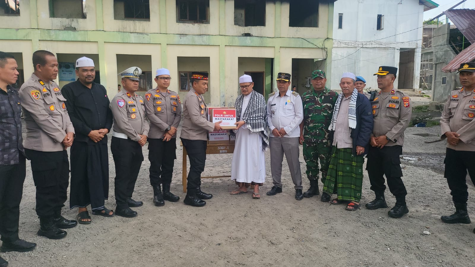 Polres Bener Meriah Salurkan Bantuan Sosial untuk Ponpes Madinatuddiniyah Babussalam Pasca Kebakaran