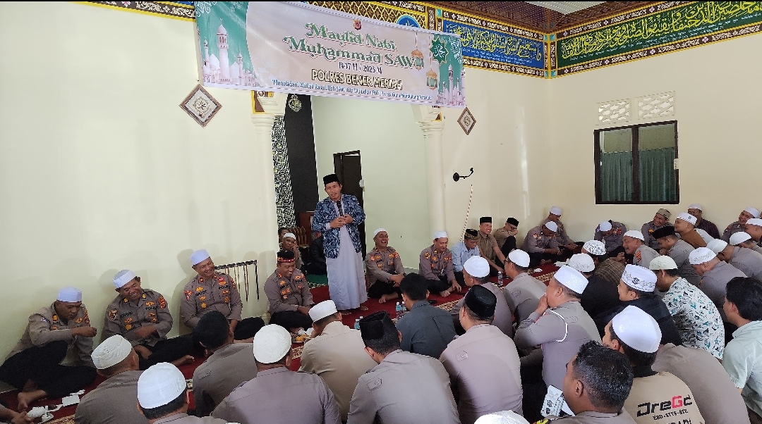 Bener Meriah – Polres Bener Meriah menggelar peringatan Maulid Nabi Muhammad SAW 1447 H/2025 M di Mushala Babuttaqwa Polres Bener Meriah, Kamis (4/9/2025).