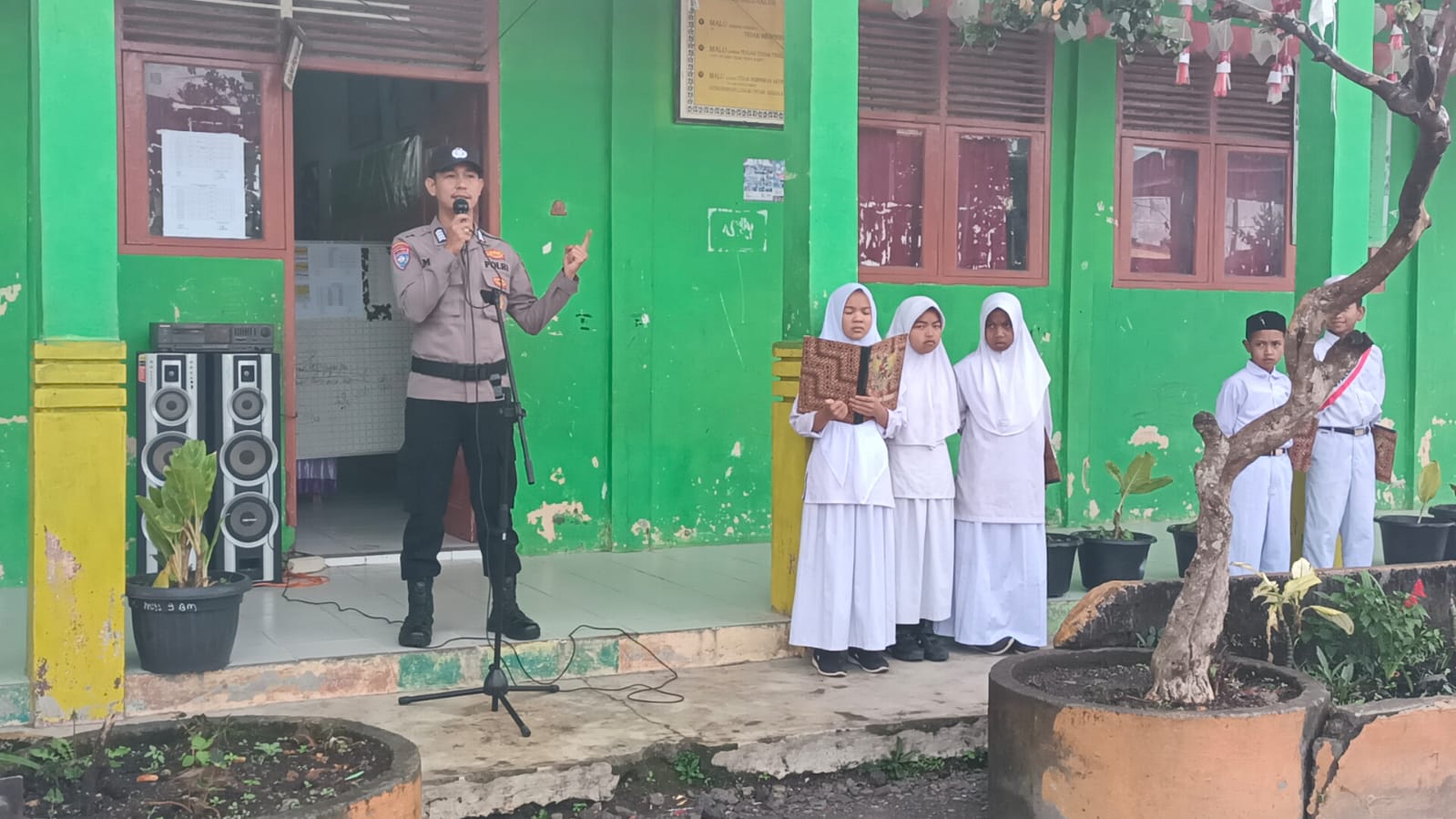 Dalam amanatnya, Bripka Muhammad Jali menyampaikan pesan moral dan motivasi kepada para siswa untuk selalu menjaga kedisiplinan serta menghormati guru sebagai bentuk sikap taat dan beretika di lingkungan sekolah.