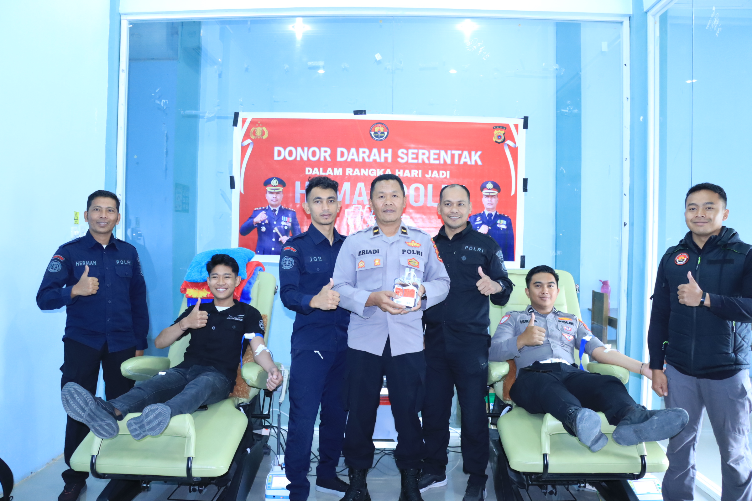 Kompol Syabirin menyampaikan bahwa kegiatan donor darah ini merupakan bentuk kepedulian Polri terhadap sesama serta wujud nyata semangat humanis yang diusung dalam tema HUT Humas Polri tahun ini.